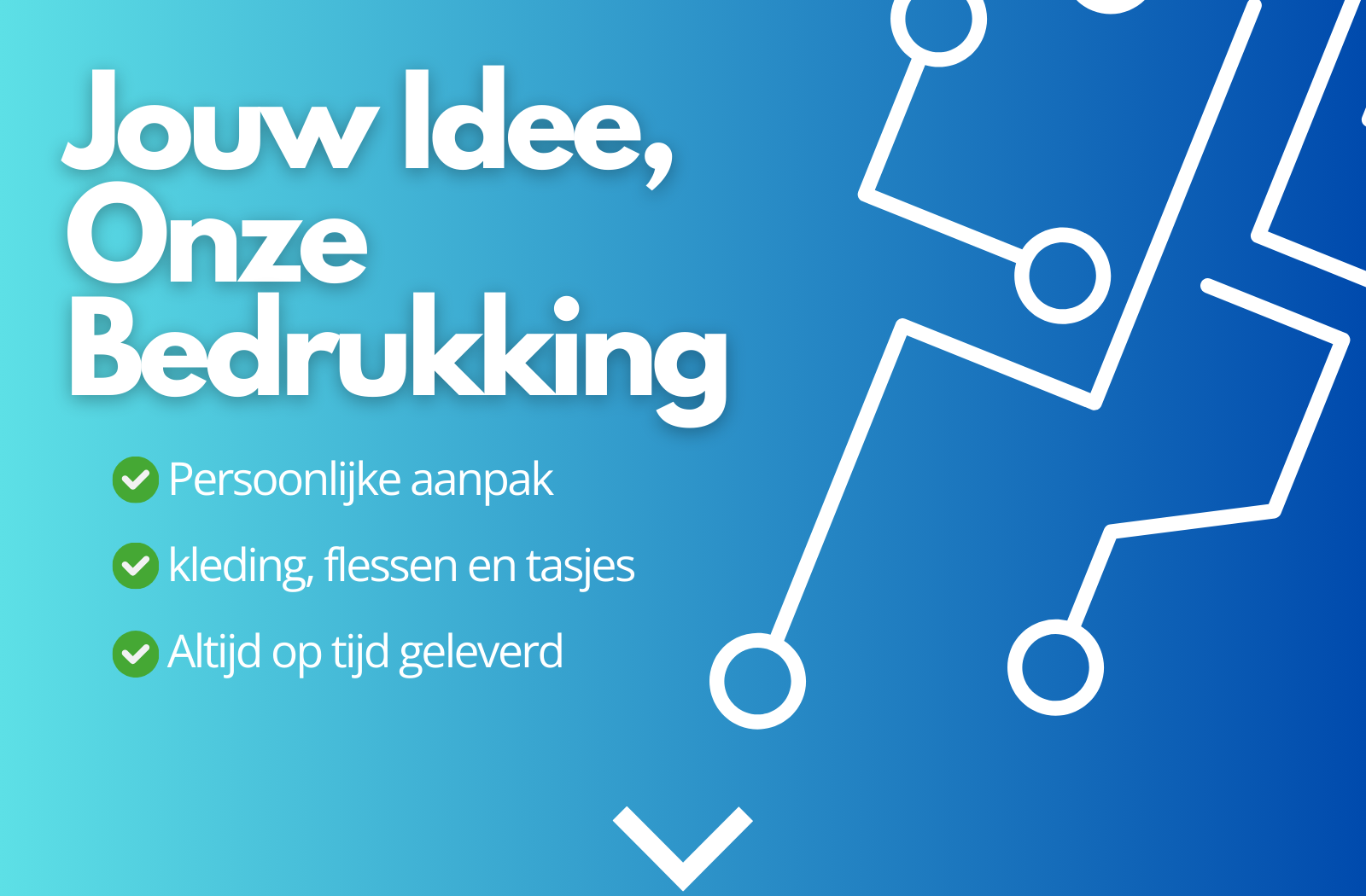 Uw locale bedrukker van kleding, flessen en tasjes. Vraag gelijk een offerte aan.